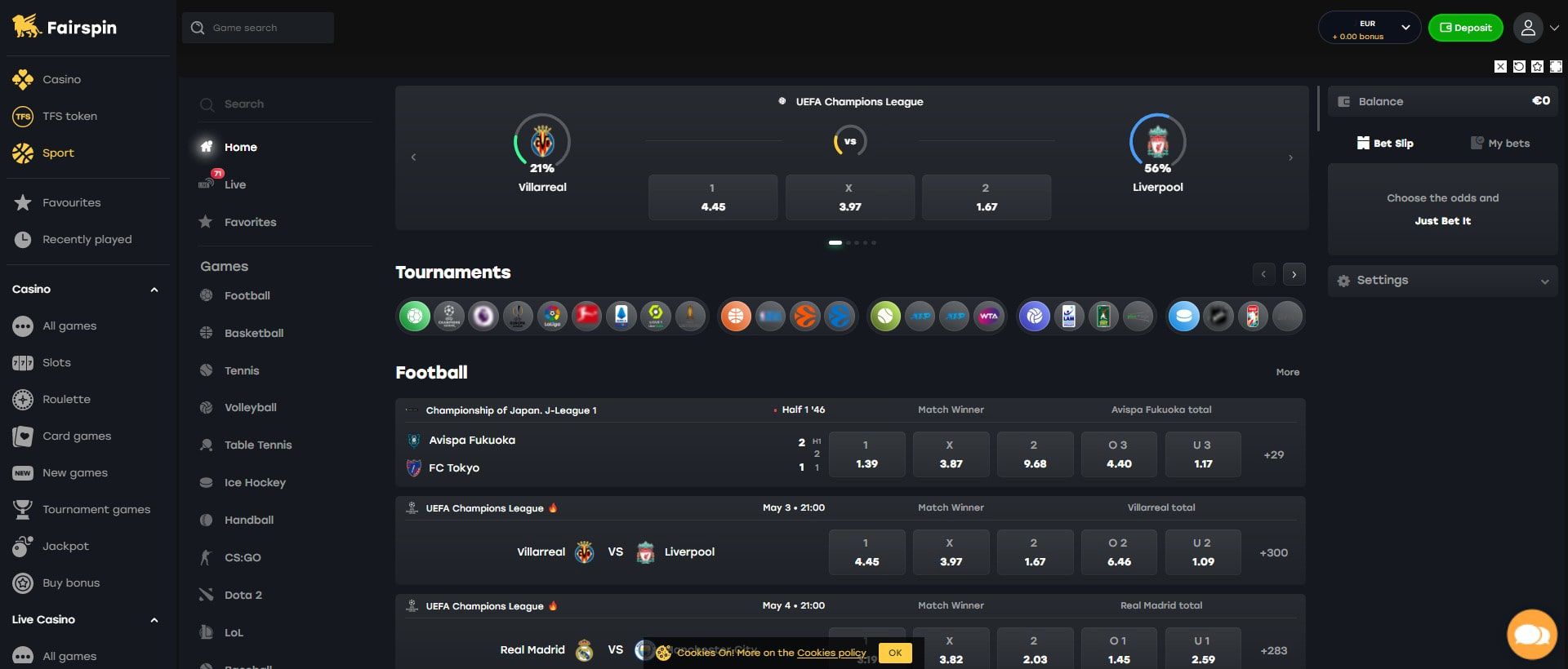 Fairspin Casino er et tokenisert system som inviterer nye medlemmer med omtrent 200 TFS-tokens. Casinoet tilbyr en matchende innskuddsbonus på 450 % pluss 140 gratisspinn som kan kreves i løpet av de første fire innskuddene på hver konto. Fairspin Casinos velkomstpakke er underlagt et par betingelser: